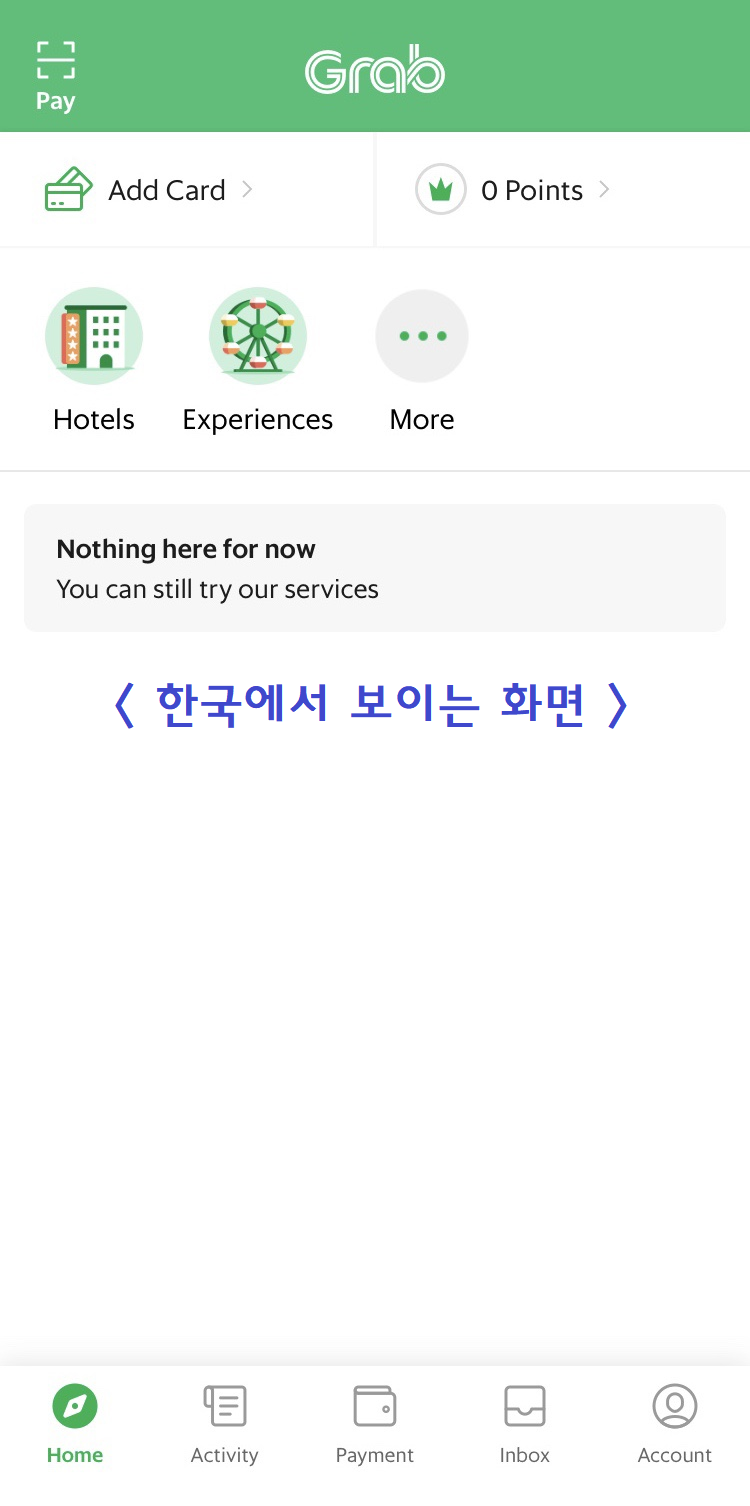대신에, 꼭 실제로 Grab을 기다릴 장소에서 그랩 앱을 실행하는 게 좋다. 만약 다른 곳으로 이동한다면 위치가 바뀌게 되니까, 그러면 기사님과 소통이 어려워서 길이 엇갈릴 수도 있으니까 ㅋㅋ