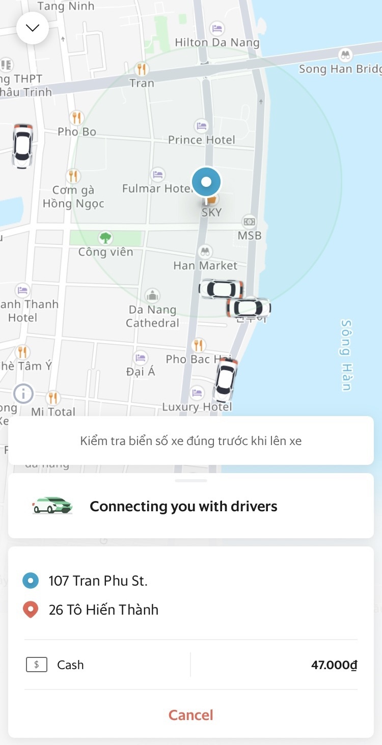 차 번호가 그랩 어플에 뜨는 저 차량번호랑 일치하는지만 잘 확인해서 탑승하면 된다. 혹시 잘못 타면 소통도 안 되고 귀찮아지니까 ㅎ 결제 금액은 처음 부를 때 측정되었으니 그 금액 그대로 지불하면 된다.