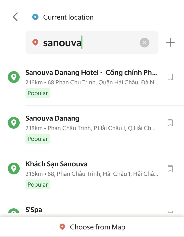 나는 다낭 Airport에서 처음으로 베트남 그랩을 이용하게 되었는데, 현재 자신의 위치는 자동으로 인식이 되니까 따로 지정할 필요는 없다. 나도 저렇게 공항으로 위치가 알아서 떴음!
