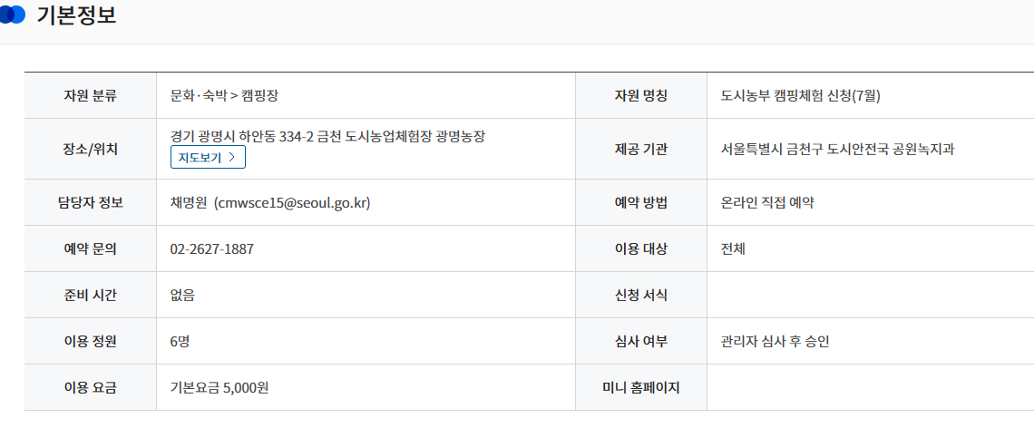 공유누리 캠핑체험장 도시농부 캠핑체험 신청(7월)