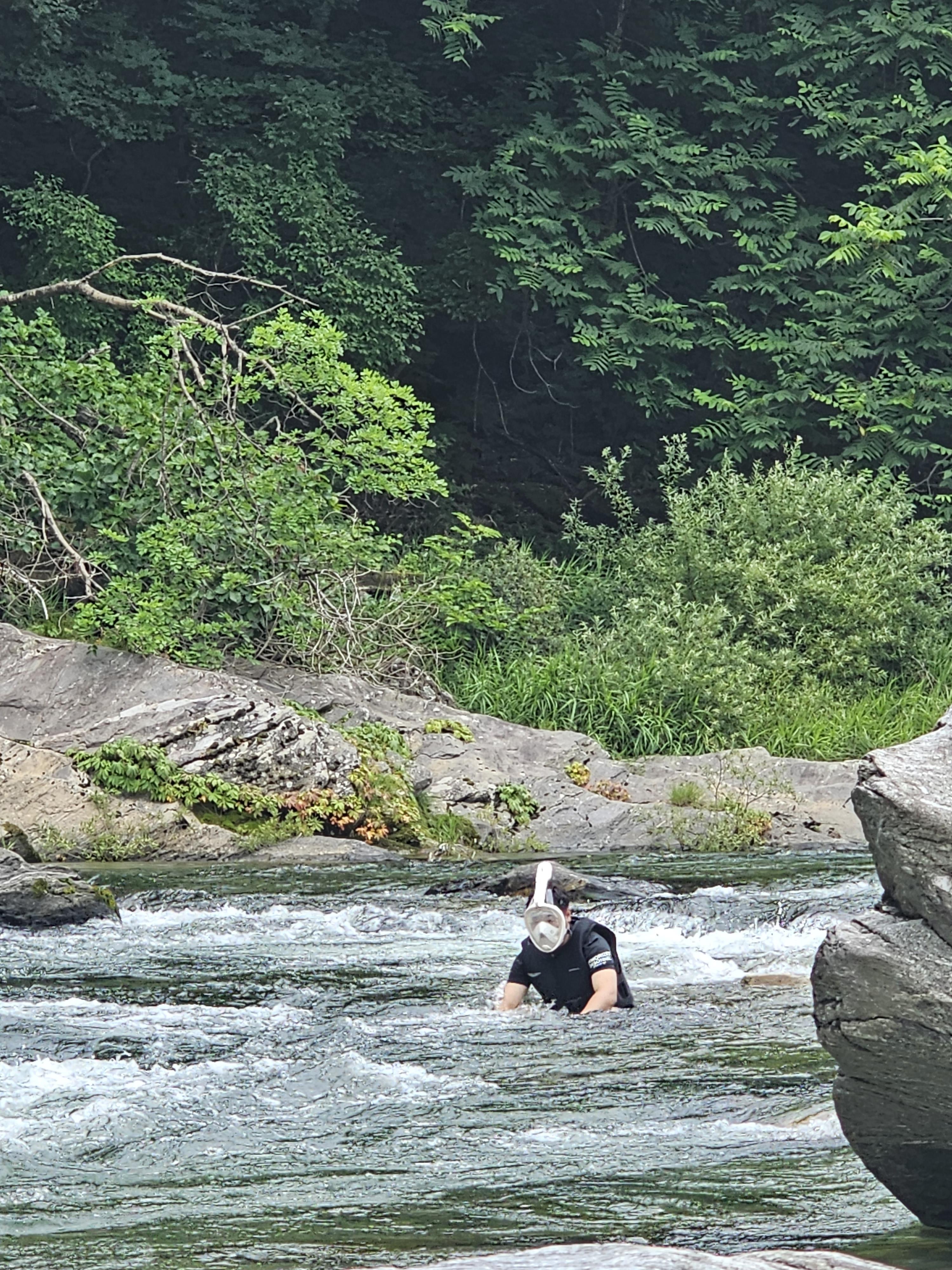 계곡수심이 조금있는편이고 위쪽은 수심낮은곳도 있어요